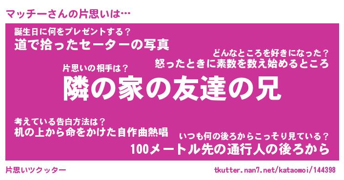 | 胡散臭い通販商品みたいなあだ名 | 『必ず成功する霊験あらたかなお札…その名も「マッチー」』 |