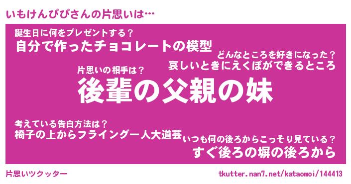| 胡散臭い通販商品みたいなあだ名 | 『億万長者になれる水晶球…その名も「いもけんぴぴ」』 |