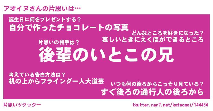 | 意味不明あだ名 | 『ペロリンアオイヌ』『永久保存アオイヌ』 |