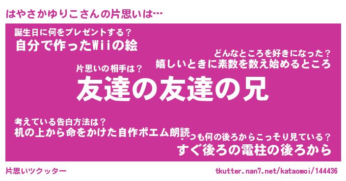 | 女子向けラノベタイトル風あだ名 | 『誰かこのはやさかゆりこを説明してください! ~契約から始まるウェディング~』 |