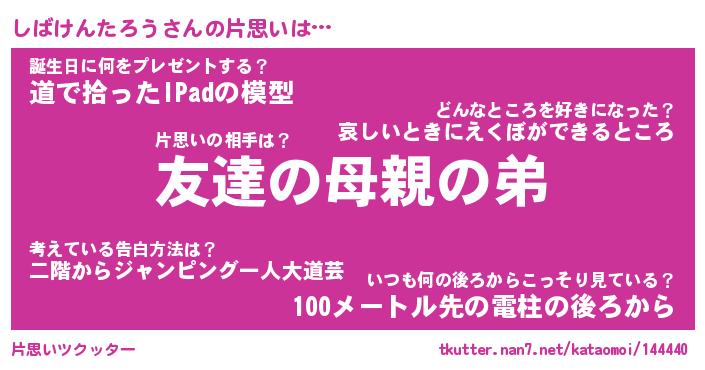 | 胡散臭い通販商品みたいなあだ名 | 『億万長者になれるブレスレット…その名も「しばけんたろう」』 |