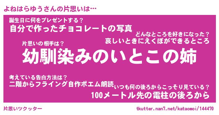 | 胡散臭い通販商品みたいなあだ名 | 『必ず成功する水晶球…その名も「よねはらゆう」』 |