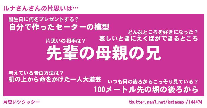 | ヘコむあだ名 | 『ルナにー』『牛乳』『ルナ太郎』 |