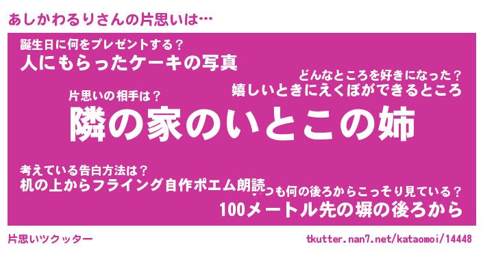 | 胡散臭い通販商品みたいなあだ名 | 『モテモテ間違いなし水晶球…その名も「あしかわるり」』 |