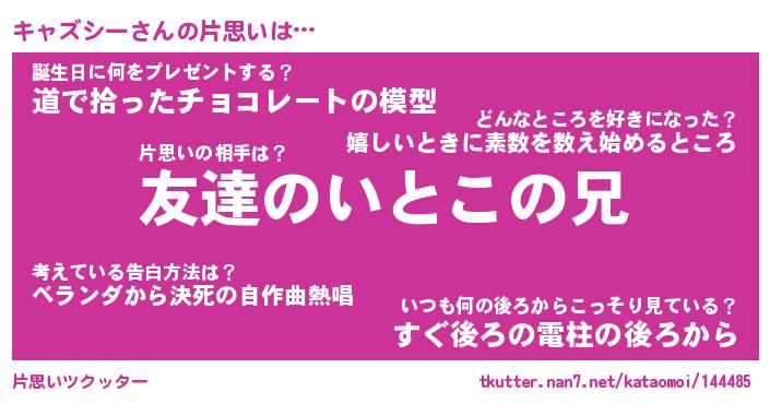| ヘコむあだ名 | 『キャもー』『酢こんぶ』『キャお』 |