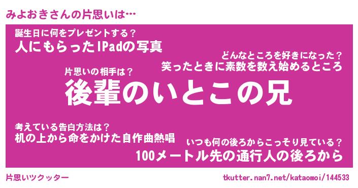 | ファンタジー風あだ名 | 『ミヨフェル』『エターナルミヨオキー』 |