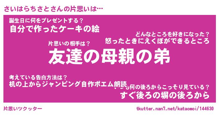 | 胡散臭い通販商品みたいなあだ名 | 『億万長者になれるブレスレット…その名も「さいはらちさと」』 |
