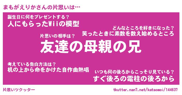 | 胡散臭い通販商品みたいなあだ名 | 『億万長者になれるブレスレット…その名も「まもがえりか」』 |