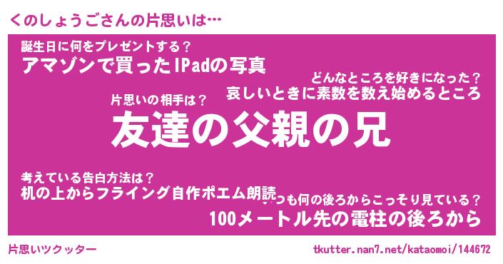 | 胡散臭い通販商品みたいなあだ名 | 『億万長者になれる水晶球…その名も「くのしょうご」』 |