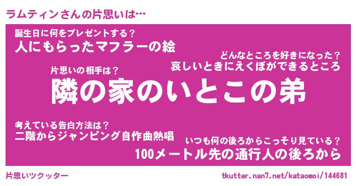 | 男性向けラノベタイトル風あだ名 | 『ラムティンの憂鬱』 |