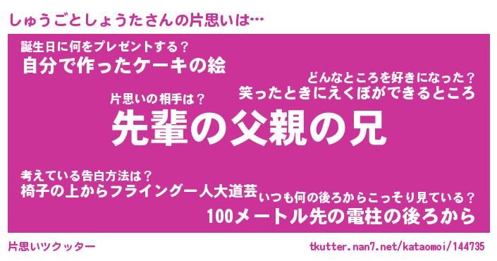 | ヘコむあだ名 | 『しゅにゅー』『つくし』『しゅお』 |