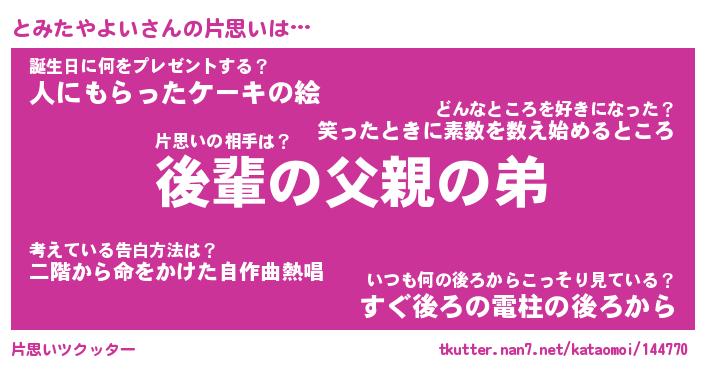| ヒーロー風カッコイイあだ名 | 『スーパートミタヤヨイ』『暗黒騎士トミ』 |