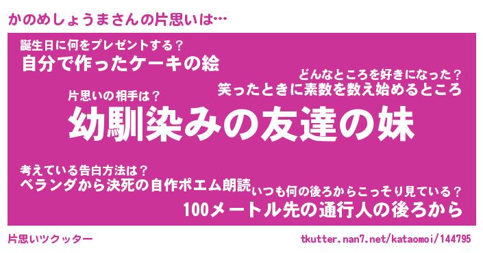 | 男性向けラノベタイトル風あだ名 | 『かのめしょうまの憂鬱』 |