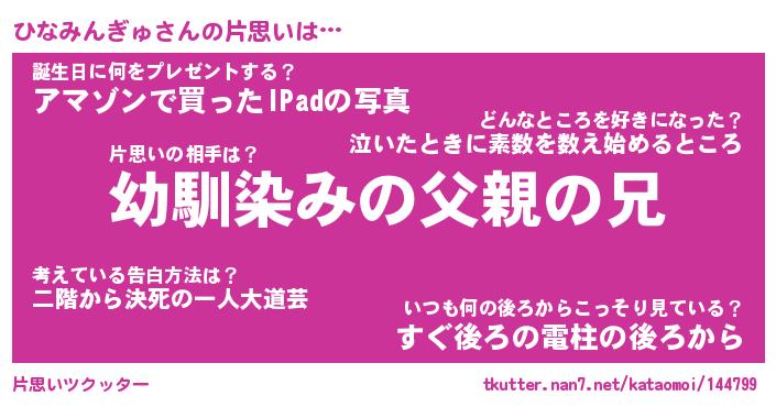 | 胡散臭い通販商品みたいなあだ名 | 『必ず成功する水晶球…その名も「ひなみんぎゅ」』 |