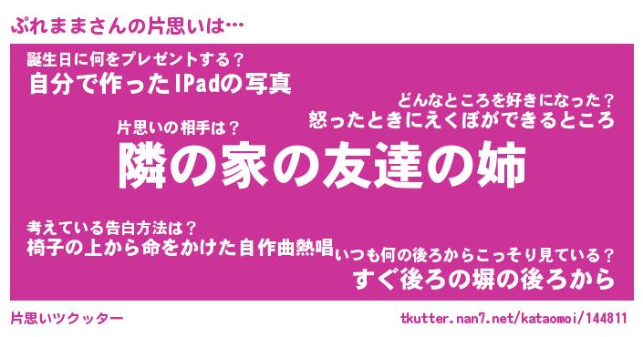 | ヘコむあだ名 | 『ぷれっふぃ~』『牛乳』『ぷれっ子』 |