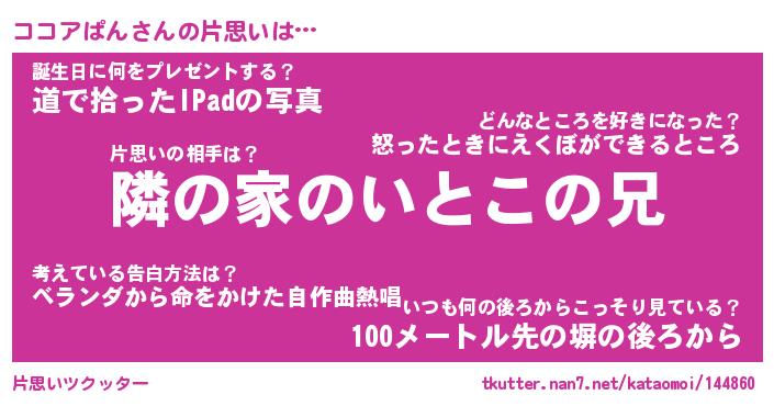 | 胡散臭い通販商品みたいなあだ名 | 『モテモテ間違いなし水晶球…その名も「ココアぱん」』 |