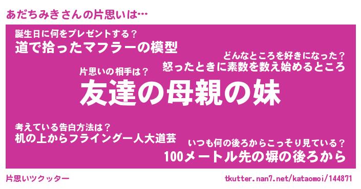 | ファンタジー風あだ名 | 『アダフェル』『エターナルアダチミキー』 |
