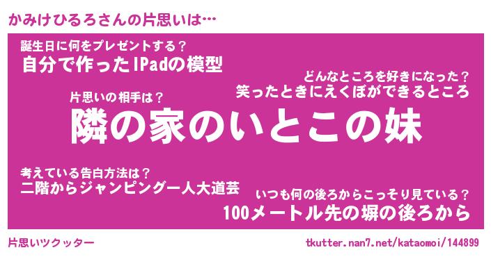 | ヒーロー風カッコイイあだ名 | 『スーパーカミケヒルロ』『幻影騎士カミ』 |