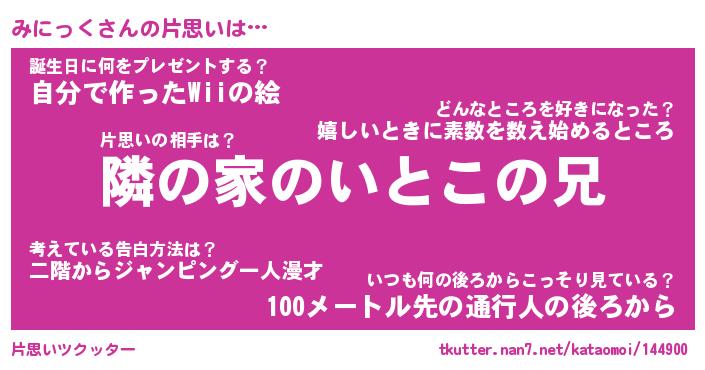 ヘコむあだ名 | 『みにもー』『牛乳』『みにっちょ』 |