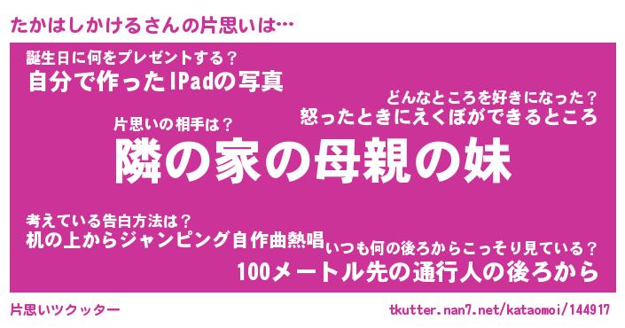 | 胡散臭い通販商品みたいなあだ名 | 『必ず成功するブレスレット…その名も「たかはしかける」』 |