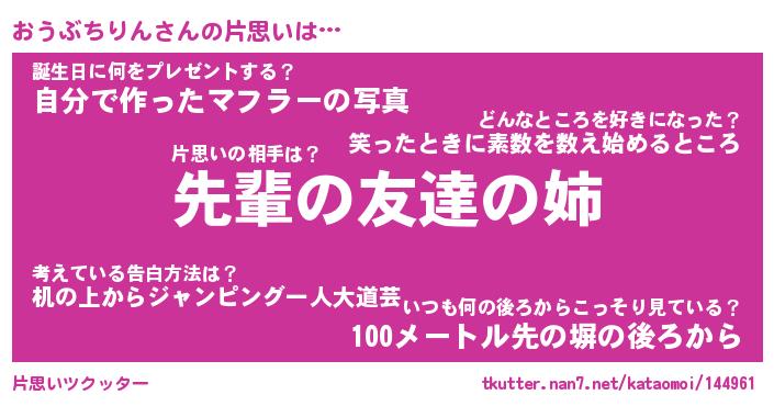 | 胡散臭い通販商品みたいなあだ名 | 『モテモテ間違いなし霊験あらたかなお札…その名も「おうぶちりん」』 |