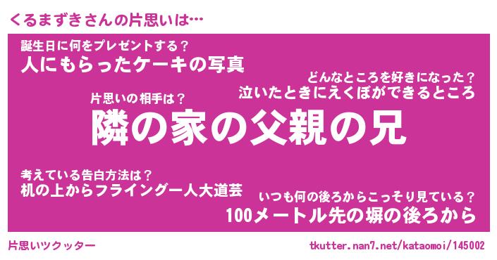 | ヘコむあだ名 | 『くるふぇ~』『酢こんぶ』『くるを』 |