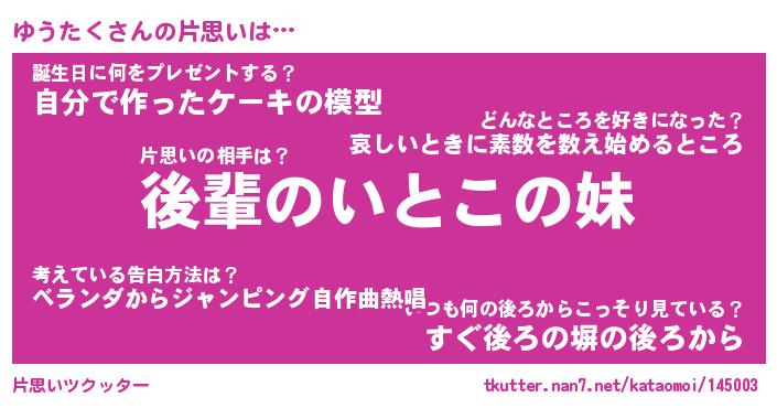 | 意味不明あだ名 | 『ペロリンゆうたく』『永久保存ゆうたく』 |