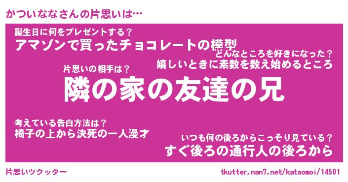 | 男性向けラノベタイトル風あだ名 | 『かついななの憂鬱』 |