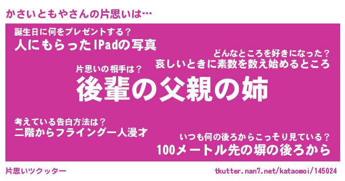 | 胡散臭い通販商品みたいなあだ名 | 『モテモテ間違いなし水晶球…その名も「かさいともや」』 |