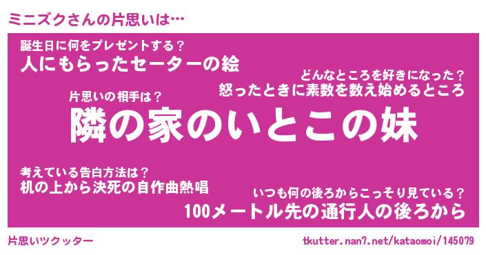 | ファンタジー風あだ名 | 『ミニフェル』『エターナルミニズクー』 |