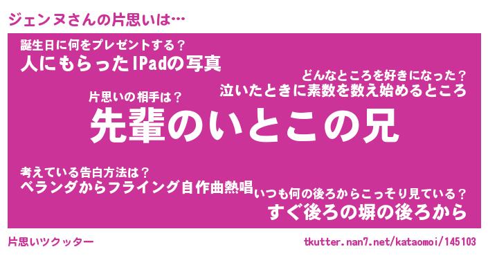 | 胡散臭い通販商品みたいなあだ名 | 『モテモテ間違いなし水晶球…その名も「ジェンヌ」』 |
