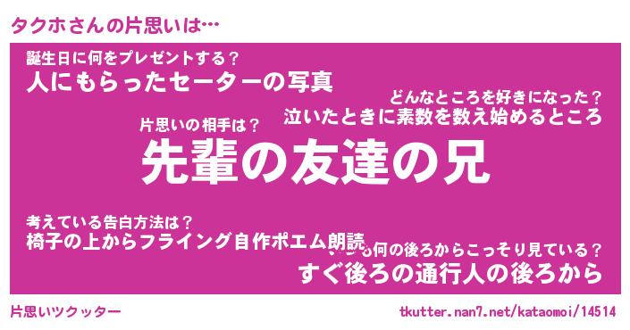 | ヘコむあだ名 | 『タクっふぃ~』『つくし』『タクを』 |