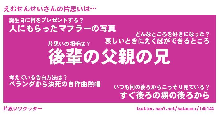 | ヘコむあだ名 | 『えむにゅー』『酢こんぶ』『えむを』 |
