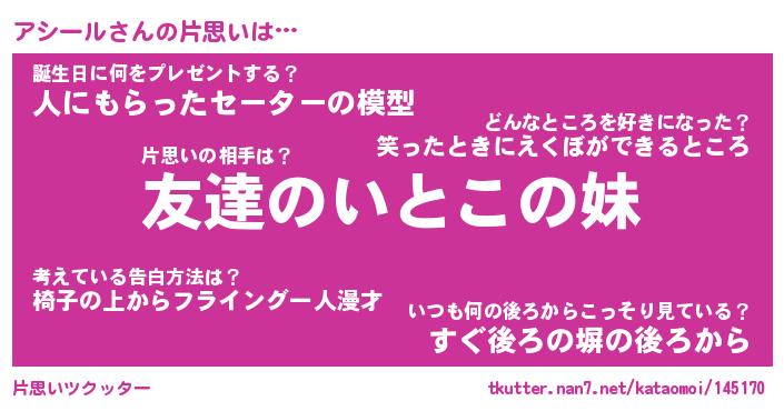 | ファンタジー風あだ名 | 『アシフェル』『エターナルアシールー』 |