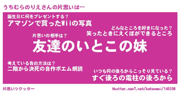 | ヘコむあだ名 | 『うちにゅー』『なまこ酢』 |