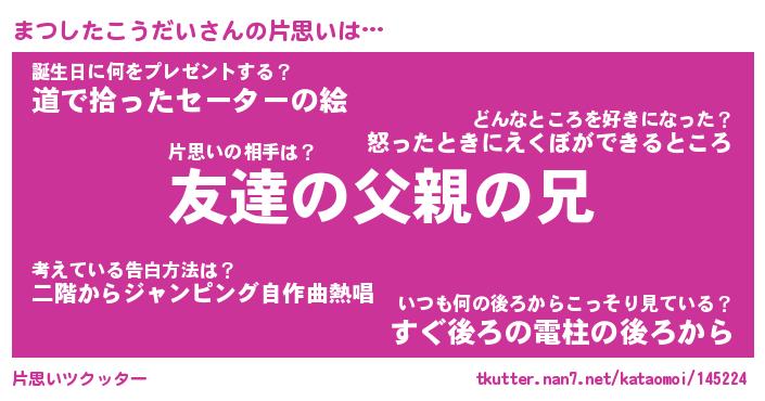 | 胡散臭い通販商品みたいなあだ名 | 『億万長者になれる水晶球…その名も「まつしたこうだい」』 |