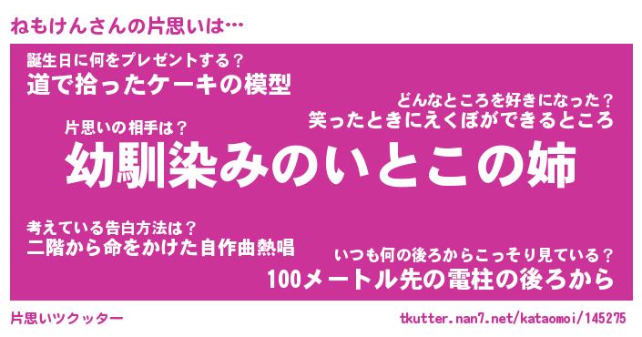 | ヘコむあだ名 | 『ねもにゅー』『牛乳』『ねもを』 |