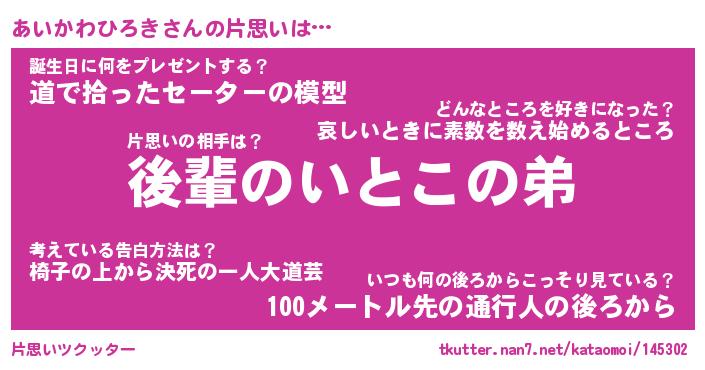 | 伝説のあだ名 | 『封印されしスナイパーあいかわひろき』 |