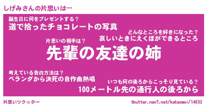 | 男性向けラノベタイトル風あだ名 | 『しげみの憂鬱』 |