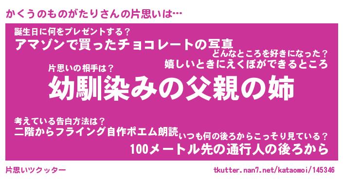 | ヘコむあだ名 | 『かくふぇ~』『なまこ酢』『かくを』 |