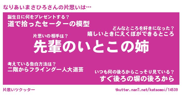 | 胡散臭い通販商品みたいなあだ名 | 『モテモテ間違いなし霊験あらたかなお札…その名も「なりあいまさひろ」』 |