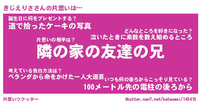 | ヘコむあだ名 | 『きじっふぃ~』『つくし』 |