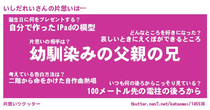 | ヘコむあだ名 | 『いしふぇ~』『つくし』『いしお』 |