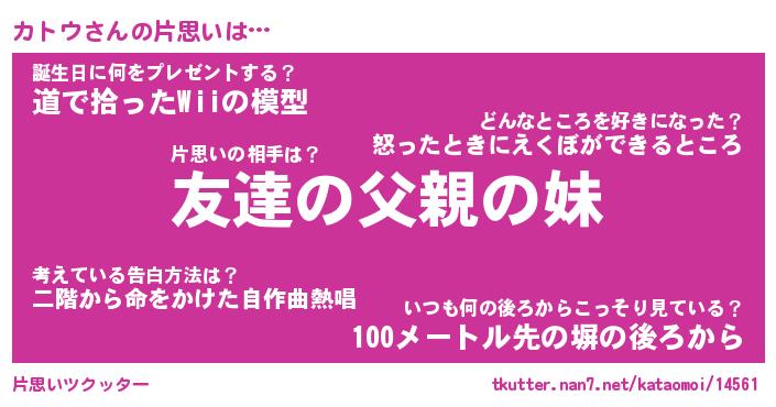 | ヘコむあだ名 | 『カトふぇ~』『豆乳』『カトっ子』 |