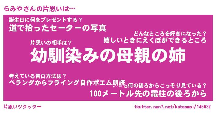 | 意味不明あだ名 | 『ペロリンらみや』『らみやフォーエバー』 |