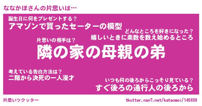 | 胡散臭い通販商品みたいなあだ名 | 『必ず成功するブレスレット…その名も「ななかほ」』 |