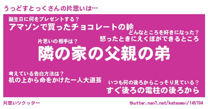 | 男性向けラノベタイトル風あだ名 | 『うっどすとっくの憂鬱』 |