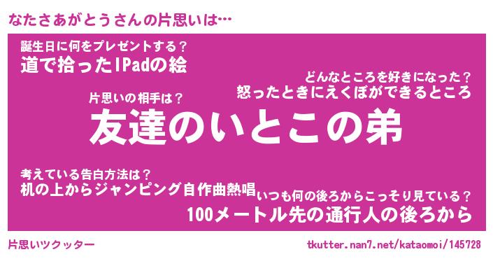 | 2回繰り返すあだ名 | 『なたなた』『ななたた』『いじいじ』 |