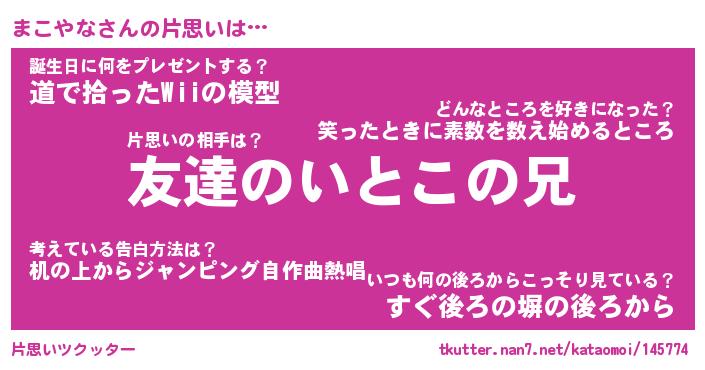 | ファンタジー風あだ名 | 『マコフェル』『エターナルマコヤナー』 |