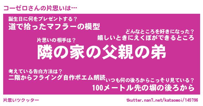 | 意味不明あだ名 | 『ペロリンコーゼロ』『永久保存コーゼロ』 |
